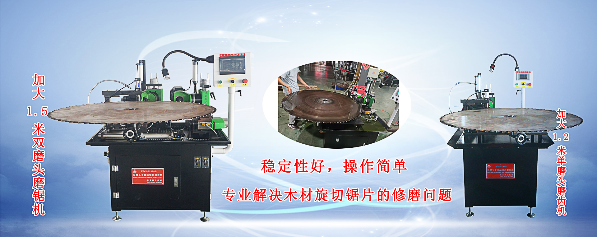 主營產品:磨鋸機,鋸片磨齒機、全數控前后角磨齒機、全數控雙磨頭磨齒機、全自動前后角磨齒機、圓鋸片磨齒機、磨刀機,高檔涂膠機、合金鋸片、金剛石鋸片等人造板機械設備